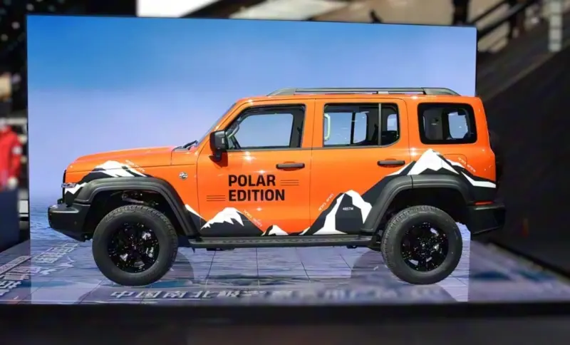 GWM Tank 300 Polar Edition tampil mencolok dengan warna eksterior khas Polar Orange. Terdapat pula penambahan decal eksklusif dan logo edisi spesial yang membedakannya dari model standar. SUV ini dibekali fitur-fitur yang dirancang untuk menghadapi cuaca ekstrem, salju tebal, dan medan off-road yang menantang.
