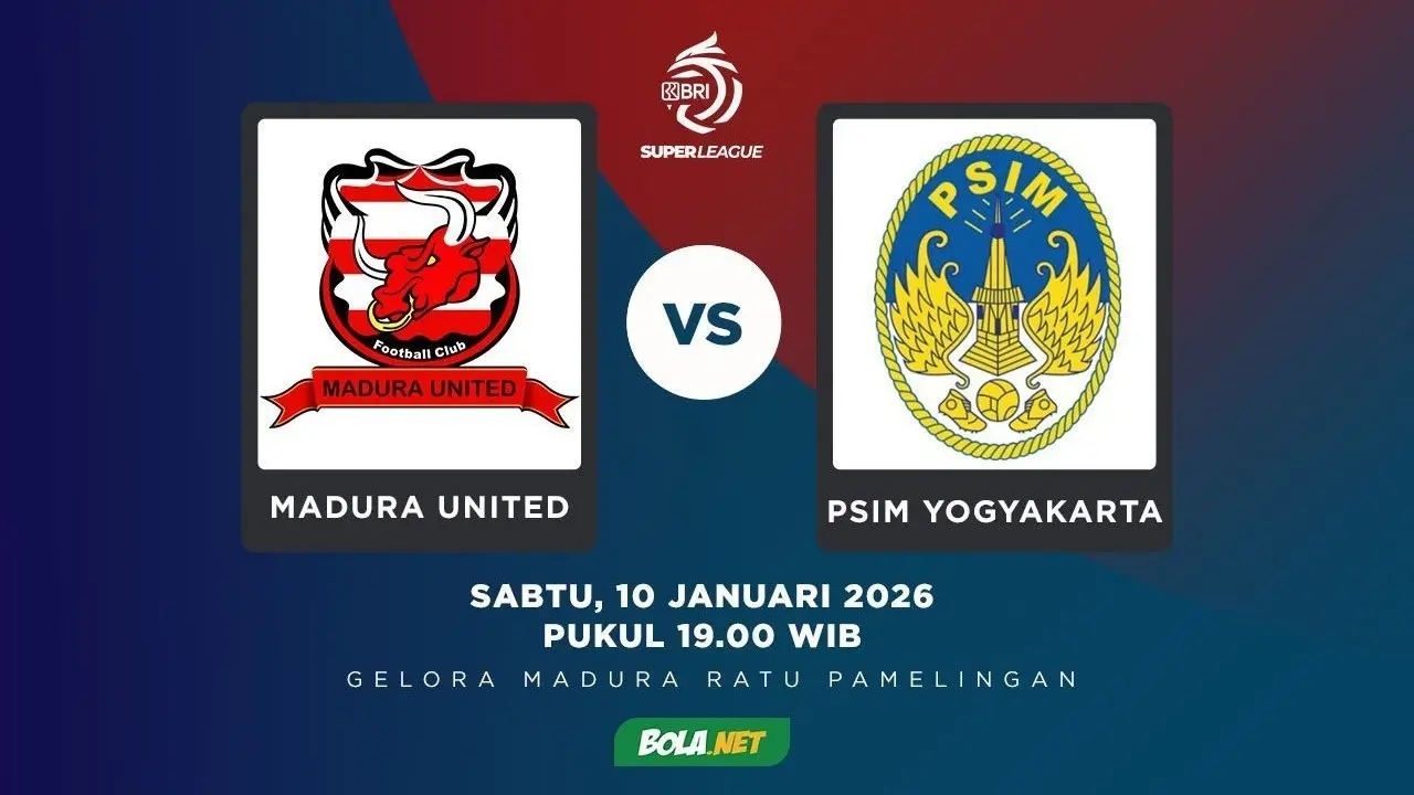 Pertandingan lanjutan Liga 1 antara Madura United dan PSIM Yogyakarta dijadwalkan pada Sabtu, 10 Januari 2026, pukul 19.00 WIB di Stadion Gelora Ratu Pamelingan.