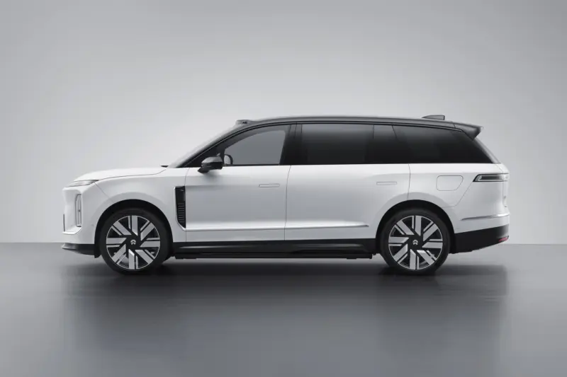 Tampilan samping ES9 banyak mewarisi karakter desain ES8, dengan garis bodi tegas yang memberi kesan kokoh dan berwibawa. Nio juga menawarkan opsi warna bodi dua warna untuk memperkuat kesan eksklusif. Menariknya, ES9 dilengkapi sensor LiDAR solid-state tambahan di kedua fender depan, yang dirancang untuk meminimalkan blind spot serta meningkatkan akurasi sistem persepsi kendaraan.