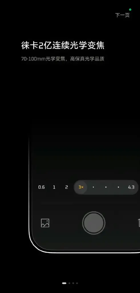 Sensor ini dipasok oleh Samsung dengan ukuran 1/1.4 inci, dipasangkan dengan optik bersertifikasi Leica APO dan modul lensa yang 35 persen lebih besar dari sebelumnya. Keunikan kamera ini terletak pada kemampuan zoom optik kontinu. Tangkapan layar aplikasi kamera yang terungkap sebelumnya menunjukkan ponsel ini dapat melakukan zoom optik mulus antara 3x hingga 4.3x, mencakup panjang fokus sekitar 70mm hingga 100mm.